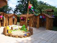 Mit Spielplätzen aus natürlichen Materialien, zum Fühlen und Erkunden.